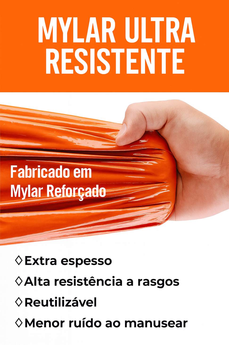 Muito mais prático que mantas térmicas comuns: basta retirar da bolsa, desenrolar e entrar. Ideal para emergências onde cada segundo importa.