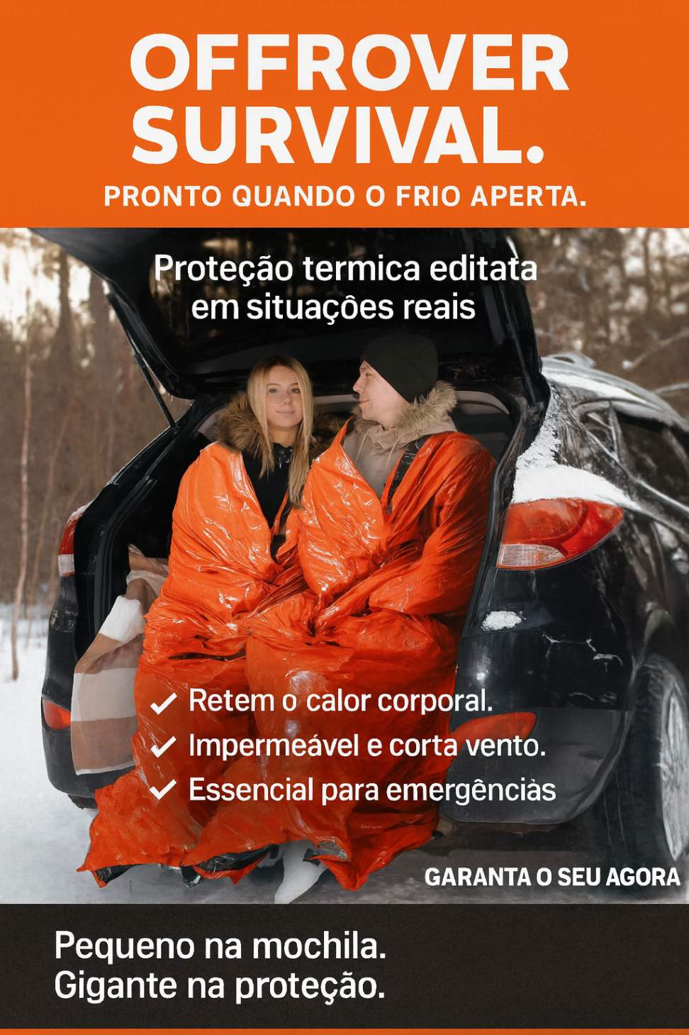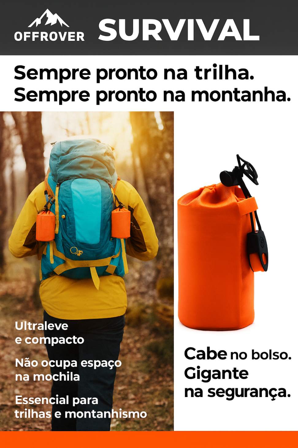 O OffRover Survival é um item essencial para quem pratica camping, trilhas, trekking, aventuras outdoor ou quer estar preparado para situações de emergência. Compacto, leve e extremamente eficiente, ele foi desenvolvido para reter o calor corporal, proteger contra intempéries e aumentar suas chances de segurança em ambientes adversos.