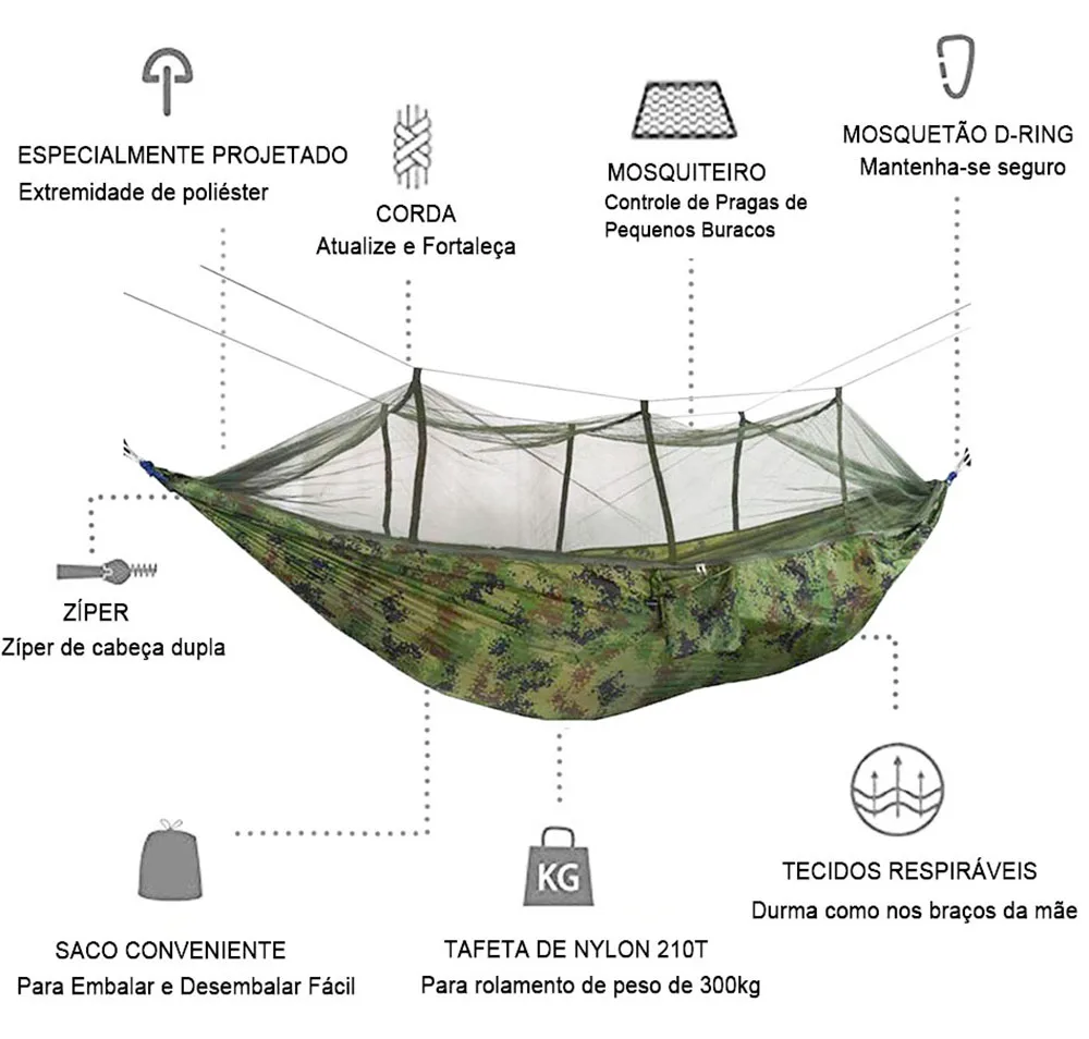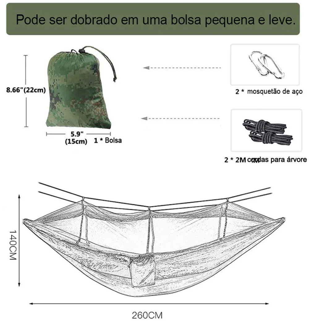 Corpo: Rede + mosquiteiro integrado (2 modos de uso)